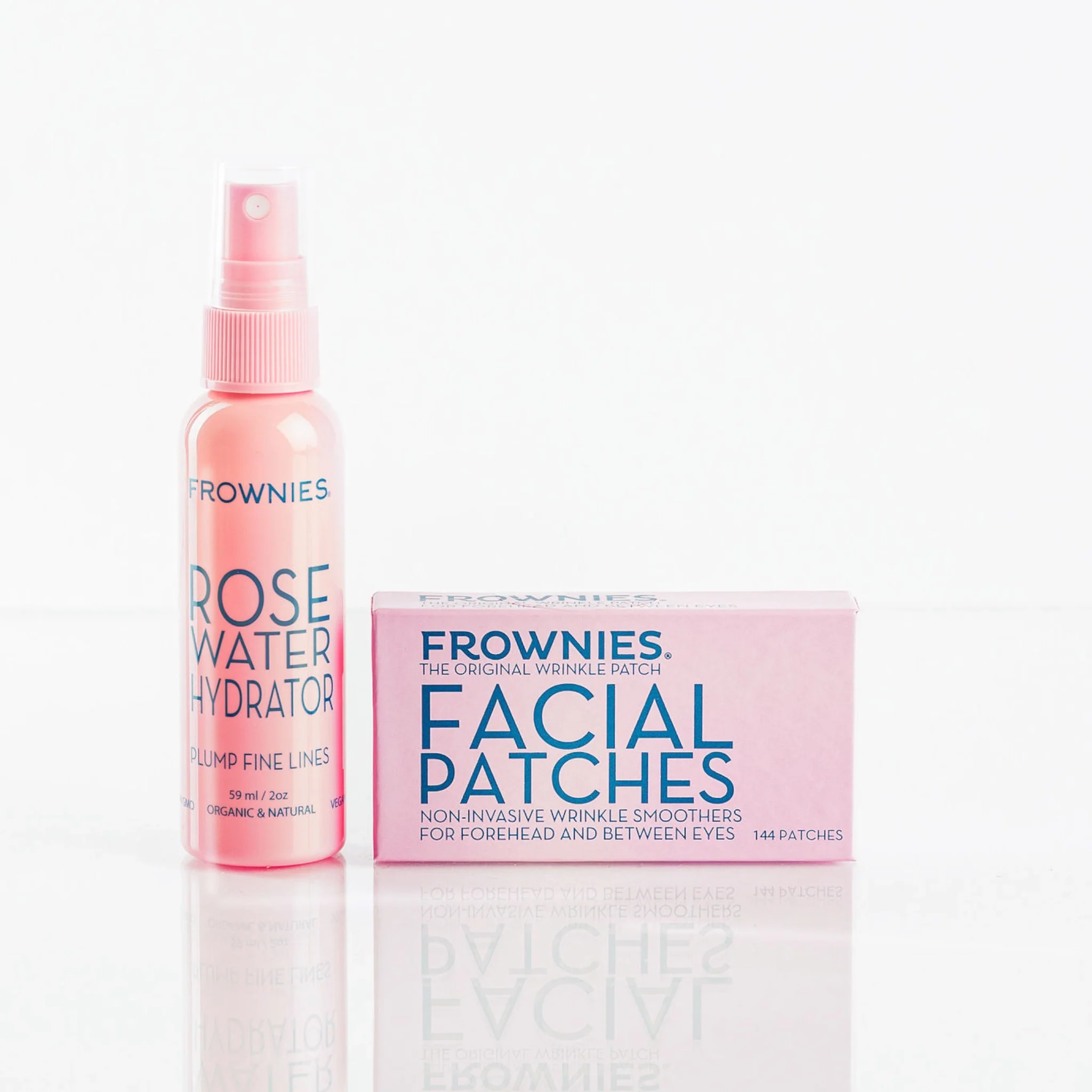 Frownies hydrating rose hydrosol can be used to activate the adhesive on your facial patches, helping them adhere to the skin therefore improving their wrinkle-reducing effects.